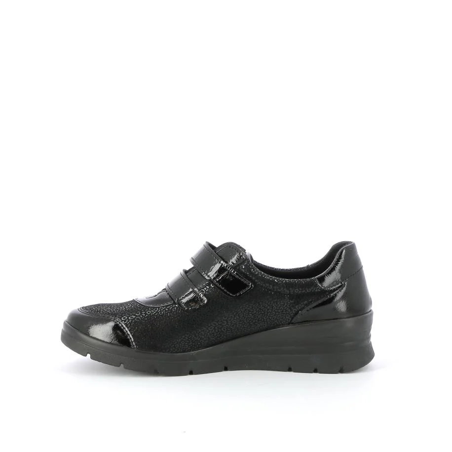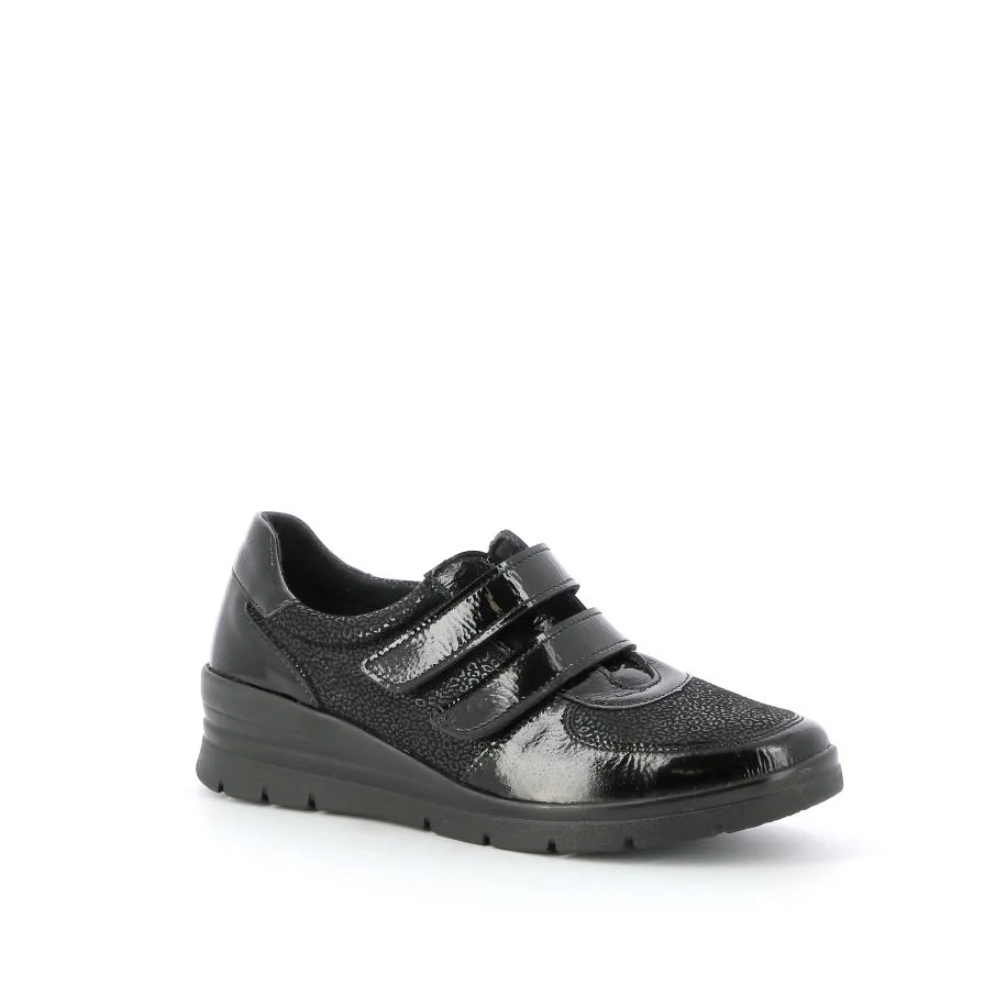 Détails Marque: 4X COMFORT Catégorie(s): Baskets Mocassins Genre(s): Femmes Fermeture: Velcro Couleur(s): Vernis Noir Composition Doublure: Textile Semelle intérieure: Cuir Dessus: Cuir