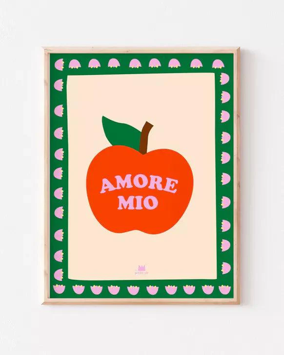 Mets un peu de fun, de pop et de gourmandise dans ton amour avec cette toute nouvelle affiche « Amore Mio » à accrocher fièrement dans ta maison 🍎