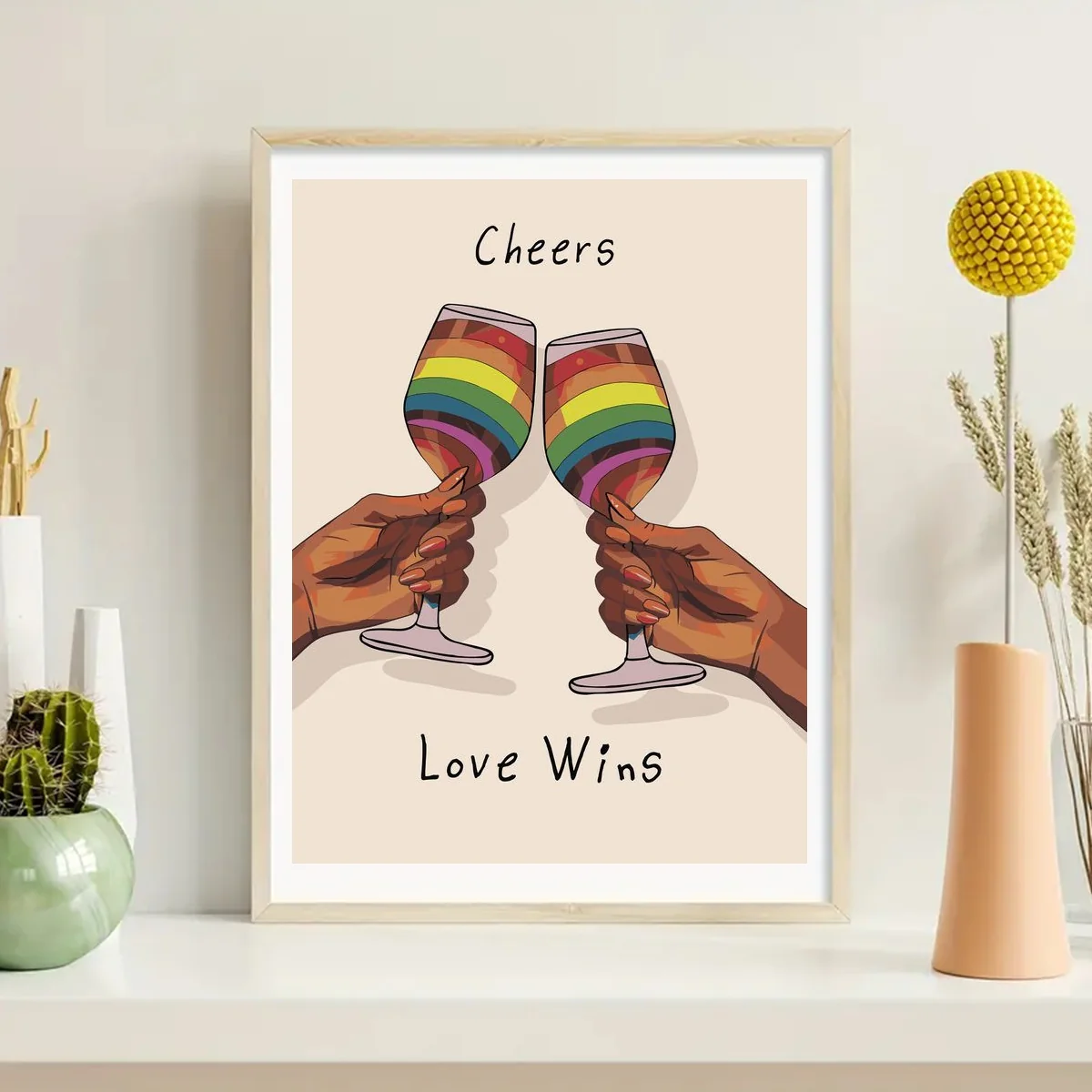Ajoutez une touche de fierté à votre maison en la décorant de notre superbe Affiche LGBT Cheers love wins. Parfaite pour trinquer dans la bienveillance.