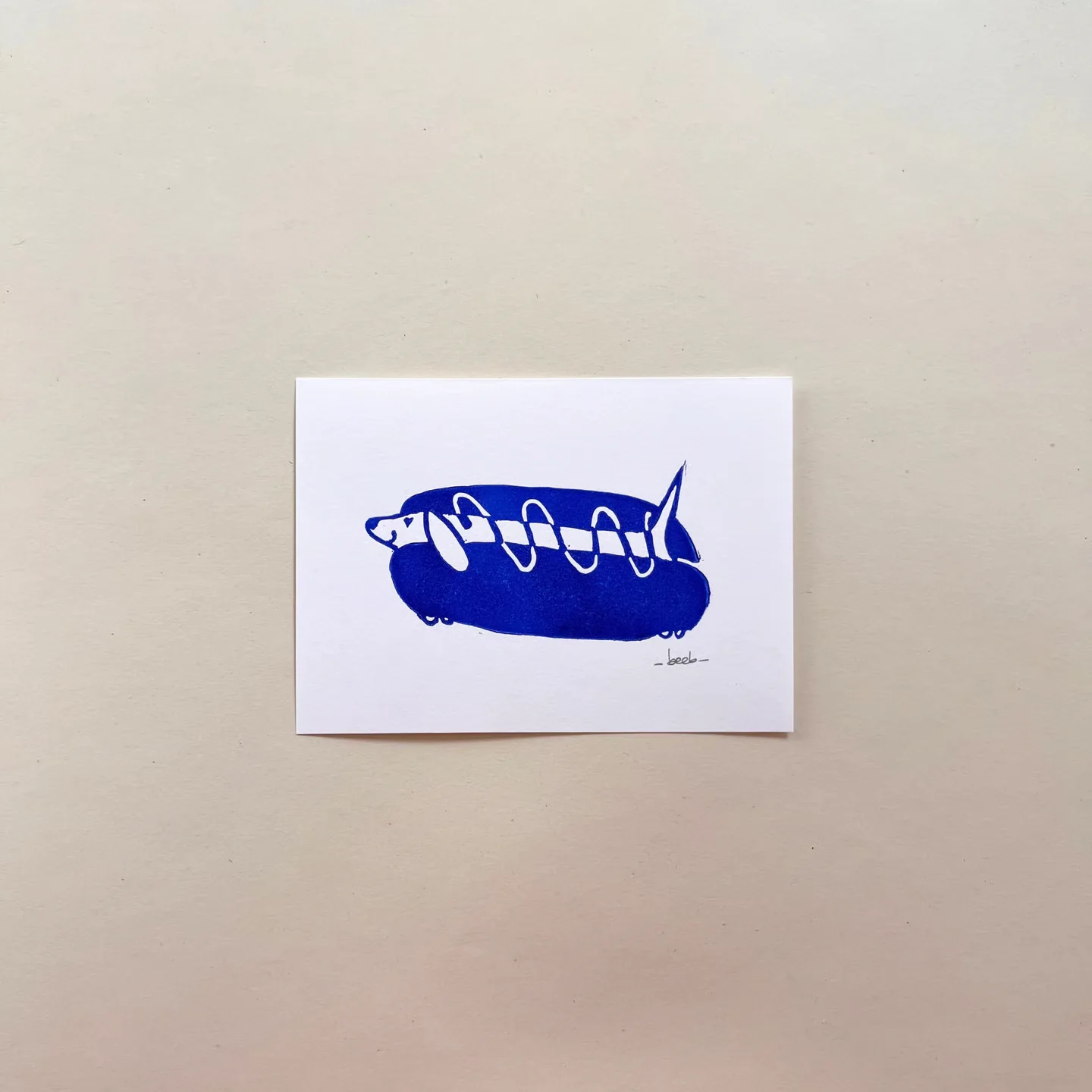 Apportez une touche ludique et pleine de charme à votre intérieur avec cette linogravure artisanale. Gravée à la main avec soin, cette illustration originale — un chien façon « hot-dog » — combine humour et douceur, chaque tirage étant unique et porteur de caractère. Format : A6 (10 × 15 cm)