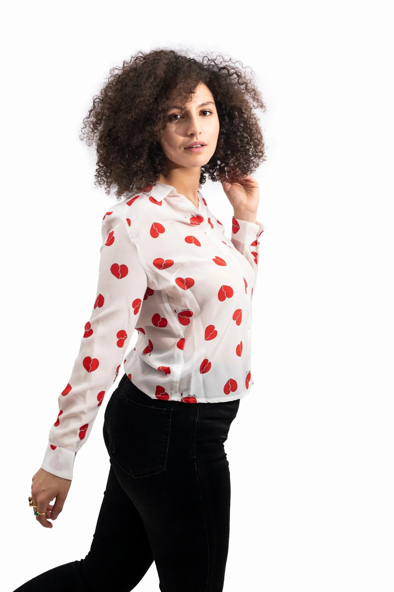 Chemisier COLETTE Blanc Coeurs Rouges (Soie)