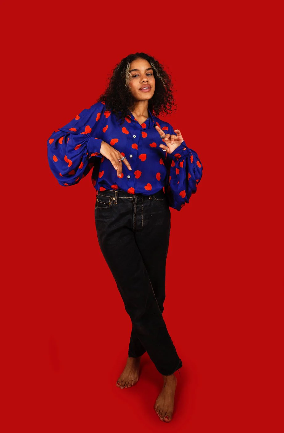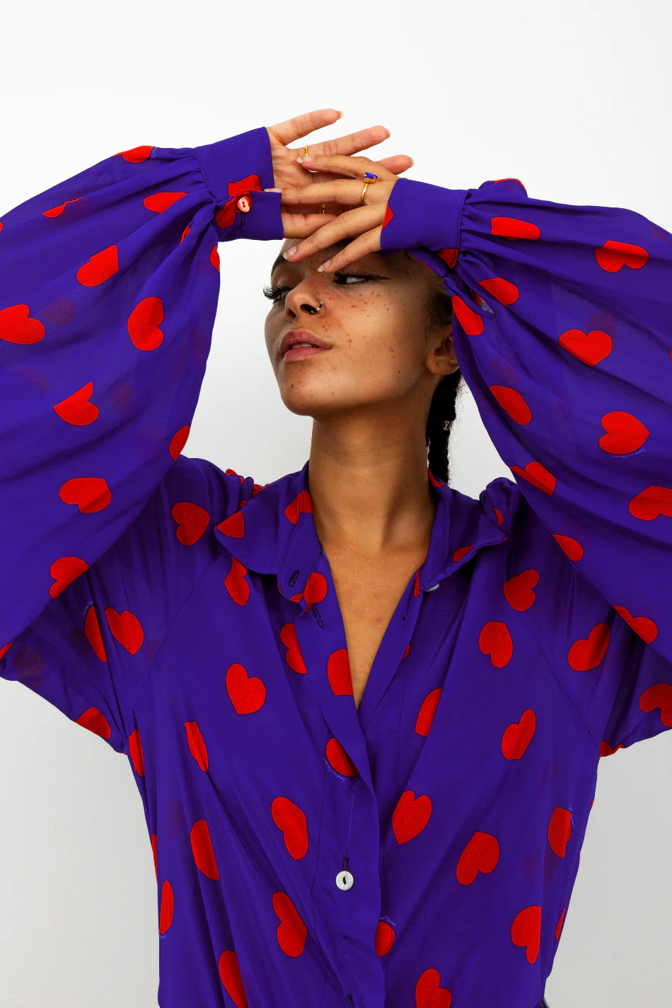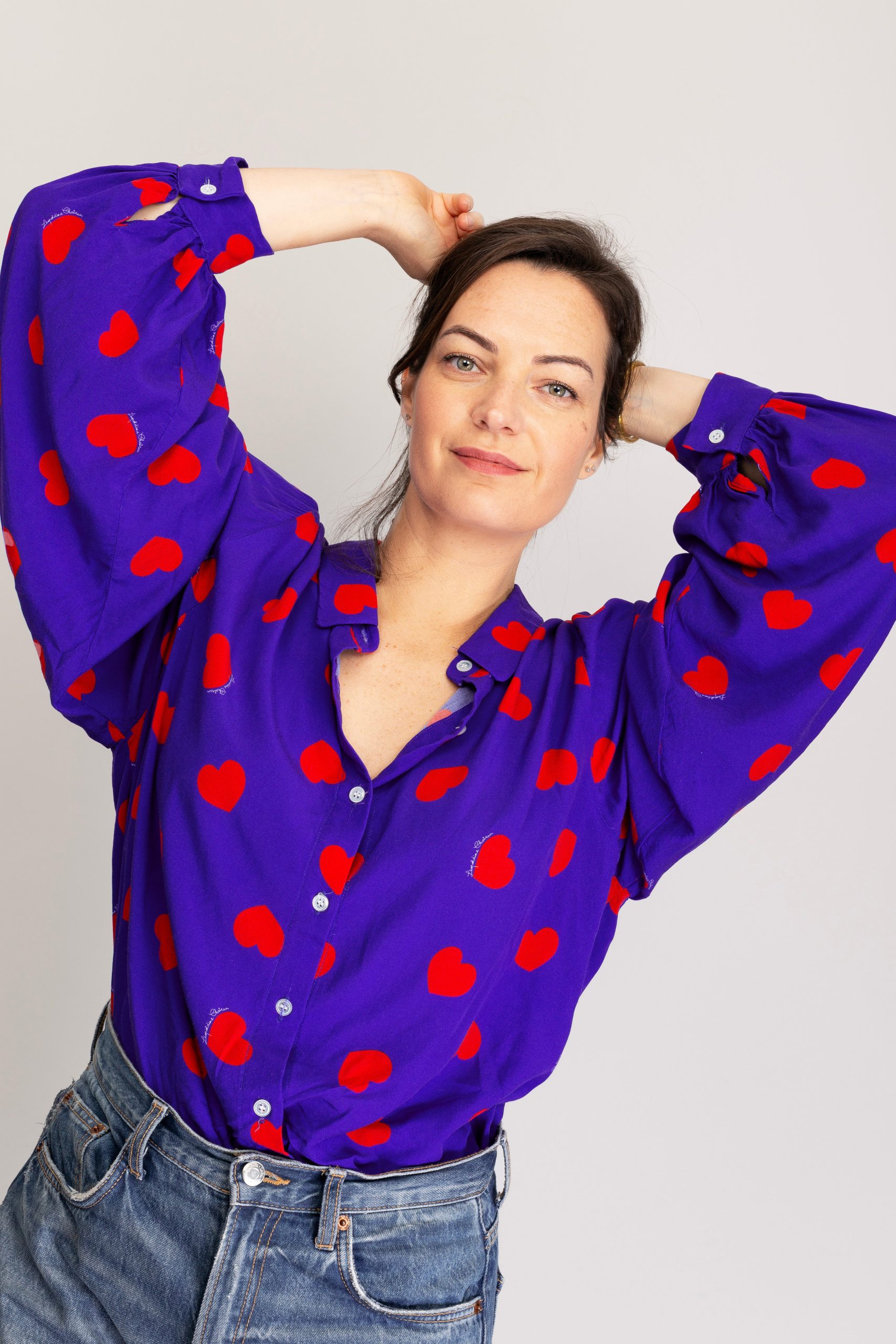 Apportez une touche de fantaisie à votre look avec notre chemisier Electra à coeurs Doté de larges manches bouffantes, ce chemisier boutonné milieu devant offre un style unique et original.