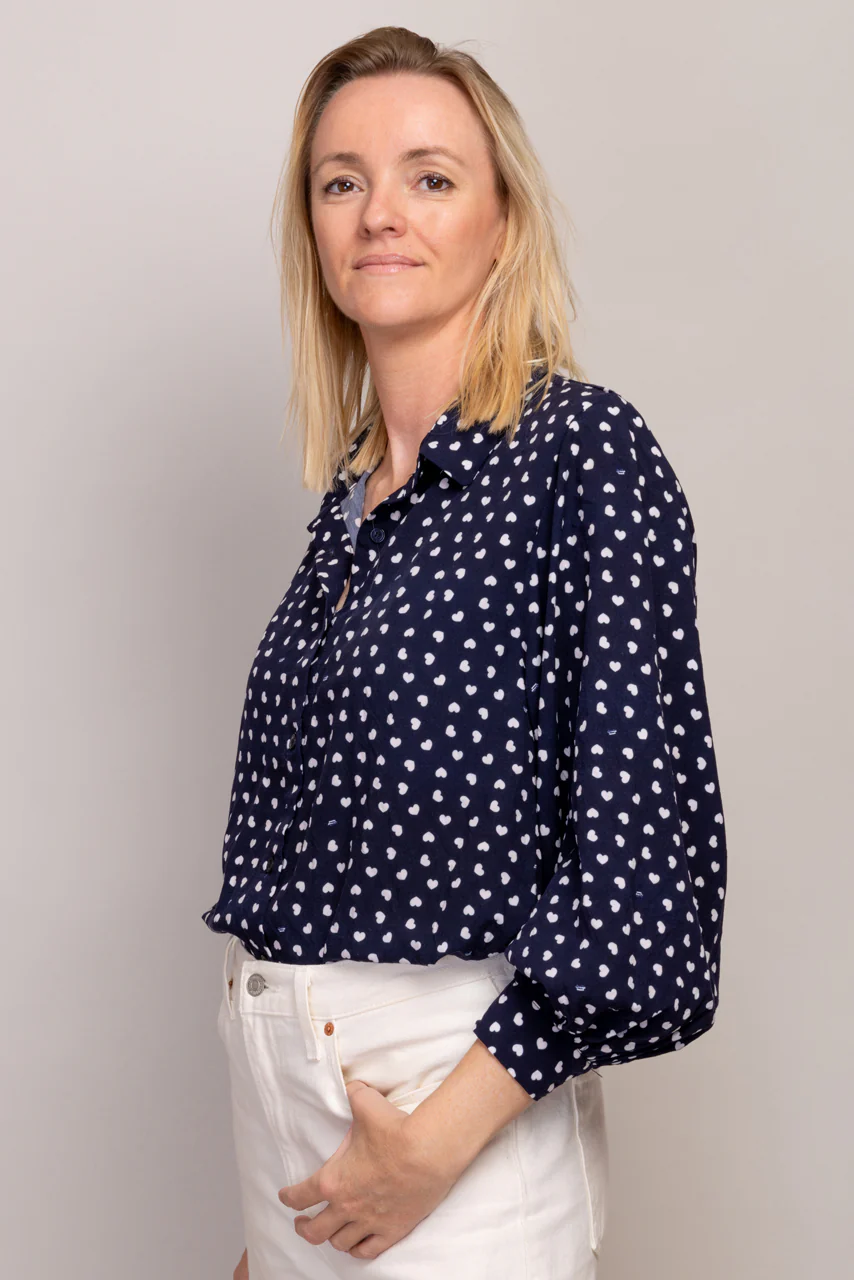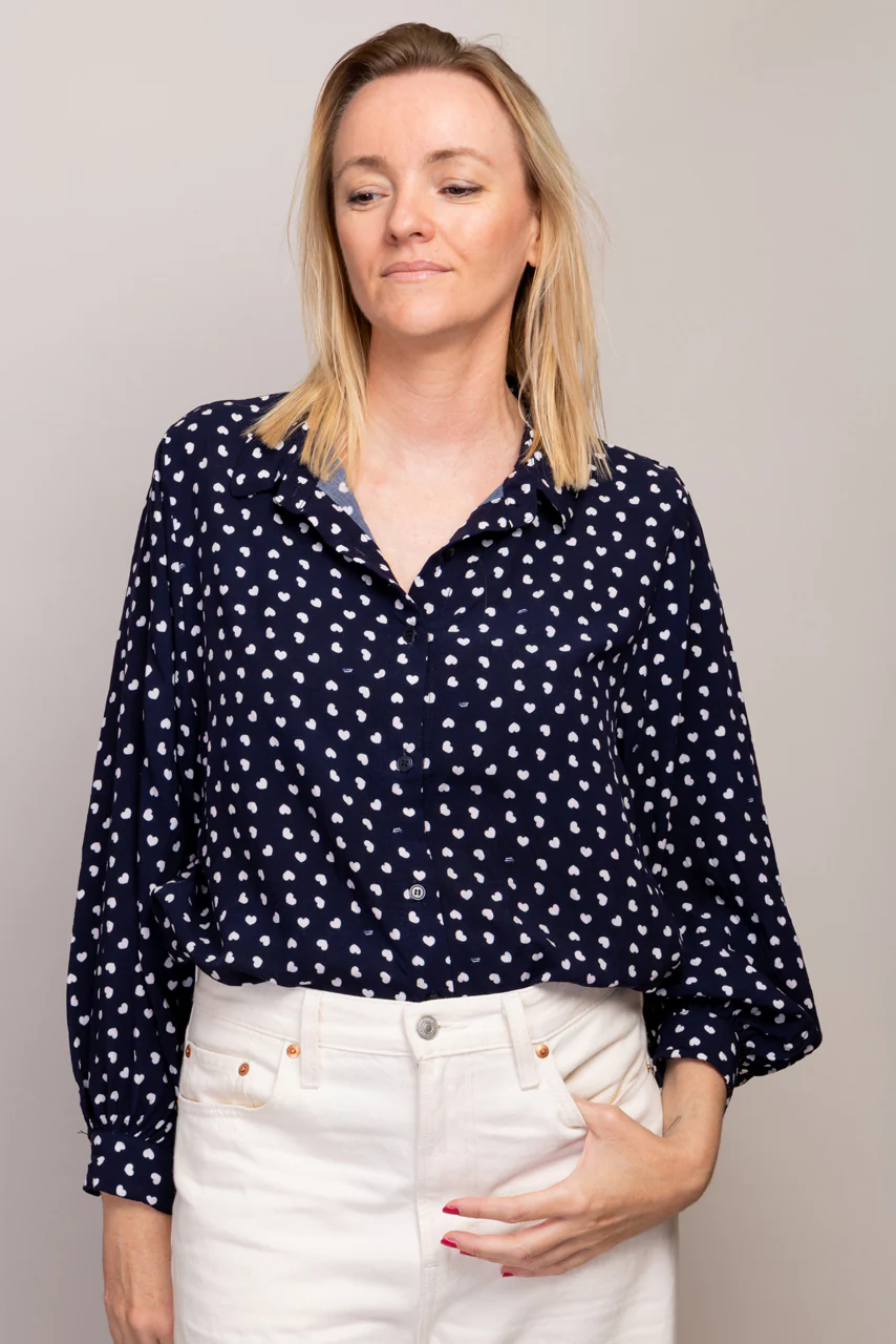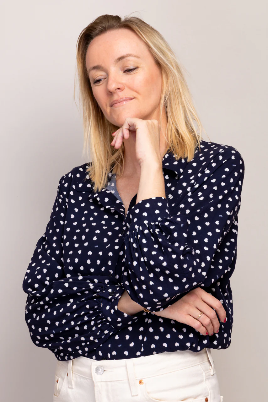 Apportez une touche de fantaisie à votre look avec notre chemisier Electra à coeurs doté de larges manches bouffantes, ce chemisier dessiné par Léopoldine est boutonné milieu devant et offre un style unique et original.