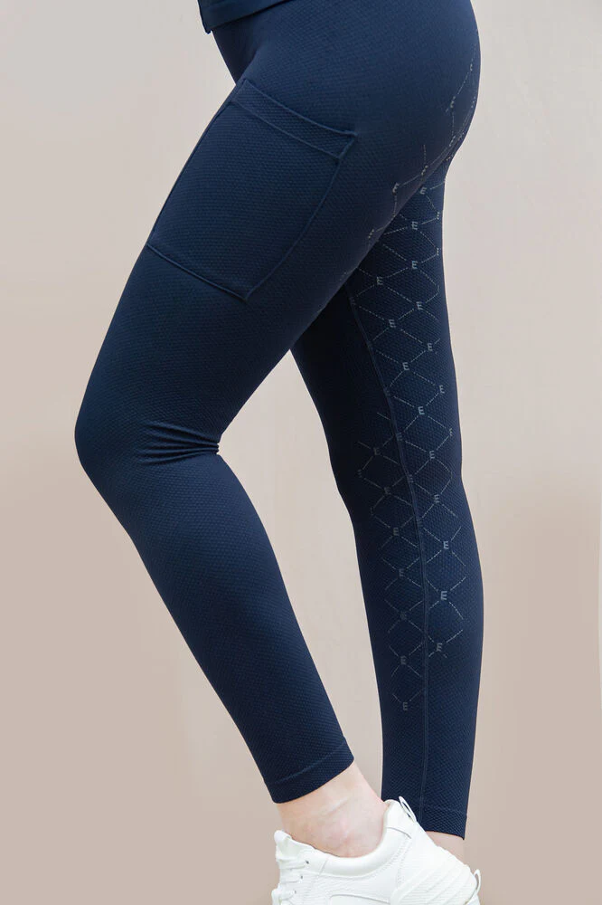 Tout nouveau legging d’équitation Eskadron sans couture SEAMLESS ultra confort respirant haute qualité avec un tissu d’été extensible dans 4 directions. Silhouette élégante processus de fabrication sans couture pour un port tout en douceur avec sa taille haute et fuselé à l’arrière il sera un incontournable. Joli plaque Eskadron à l’avant sangle Eskadron discrète à l’arrière poche pour téléphone portable. Tout a été pensé!