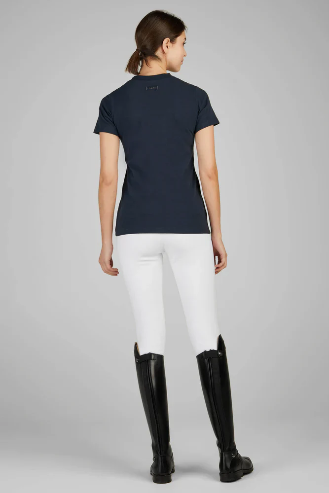 Ce t-shirt à col rond au style décontracté-chic offre une très haute qualité de coton. Intemporel il sera un véritable allié au quotidien. Aussi bien à la ville que pour monter à cheval. Cette couleur subtile marque le début de l’automne. Le logo sur le devant est tout en paillette ton sur ton pour toujours […]