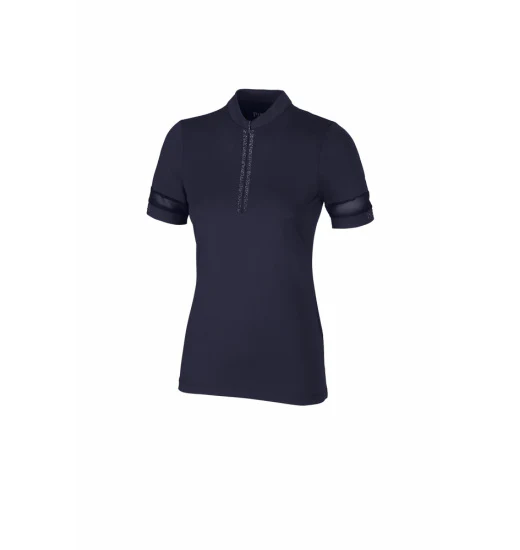 Très joli polo d’entraînement PIKEUR SELECTION. La descente de fermeture éclair est entourée de cristaux ton sur ton pour une finition élégante et féminine. Conception en tissu italien de haute qualité. Fermeture éclair invisible. Manches bi-matière avec une réhausse PIKEUR en strass ton sur ton. Il allie confort originalité et féminité il sera parfait pour monter à cheval. Les détails de la marque s’affichent sur le bas des bras ainsi qu’en bas du dos.