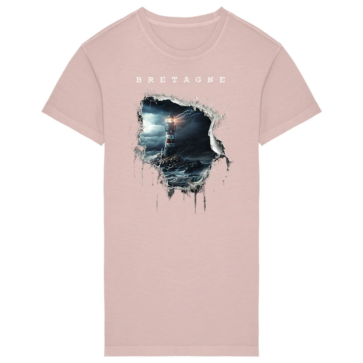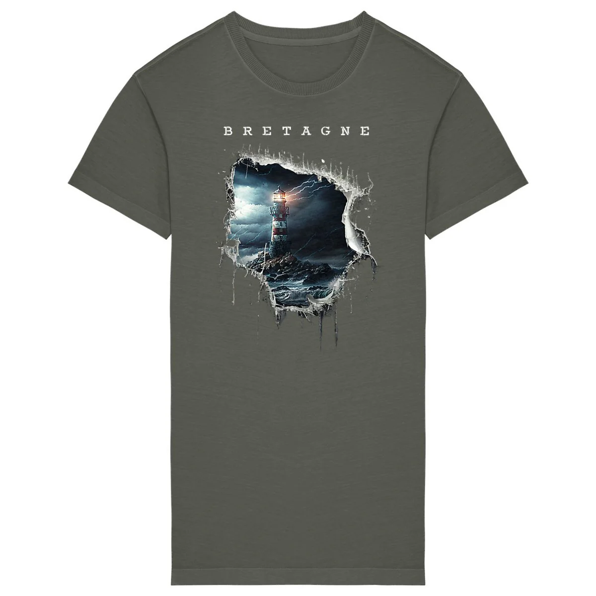 Robe T-shirt bretonne:Ouverture sur un phare breton mer déchainée