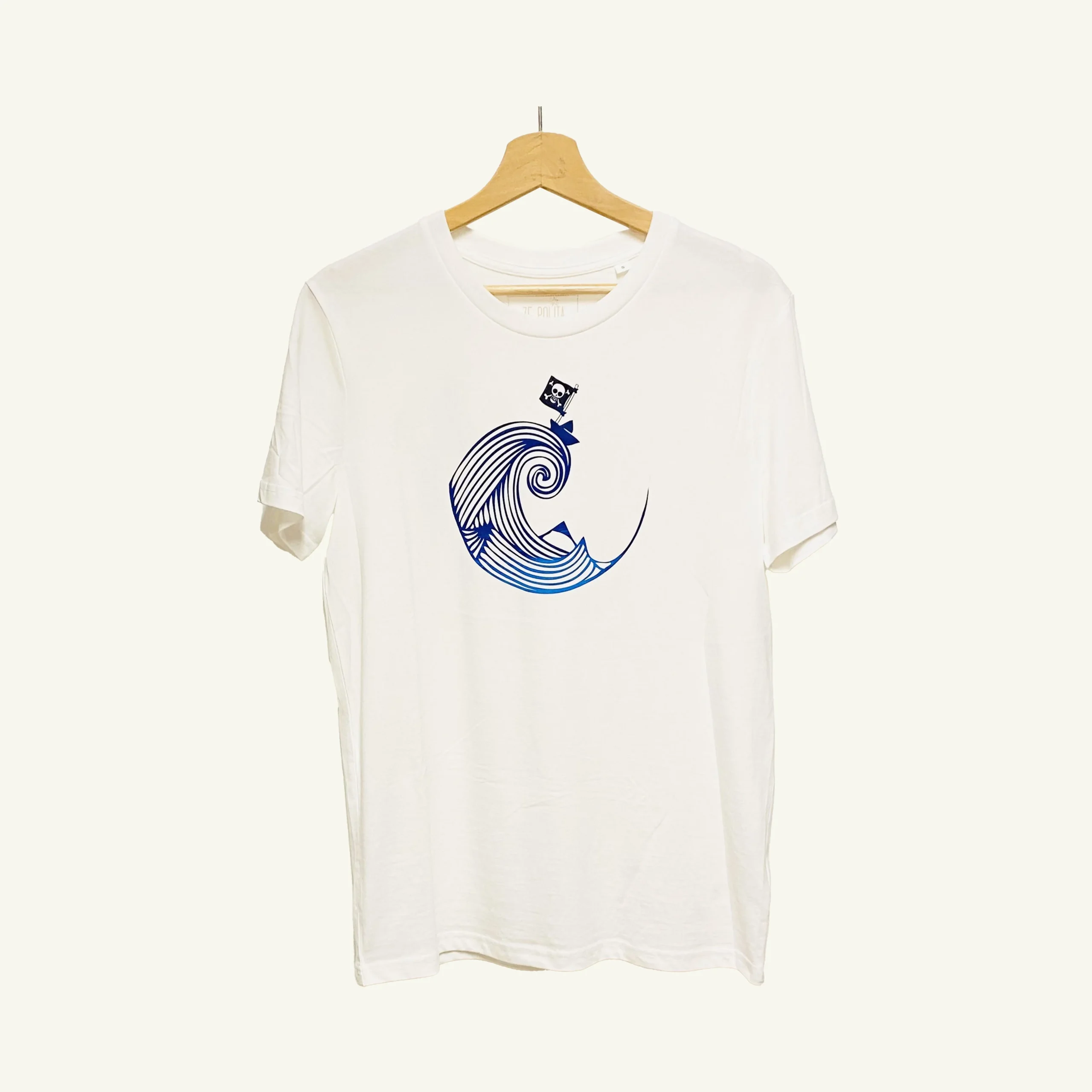 Une vague graphique en référence à celle de Kanagawa, célèbre estampe japonaise du peintre, Hokusai.