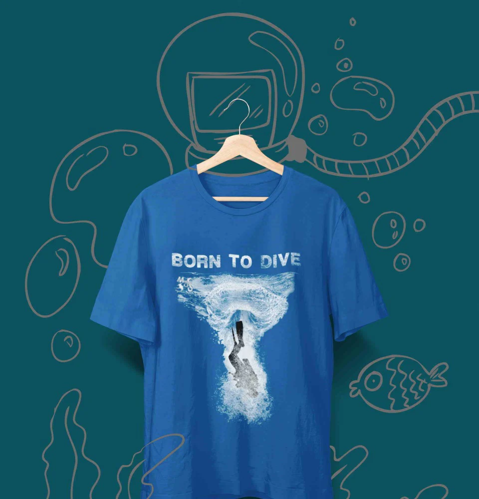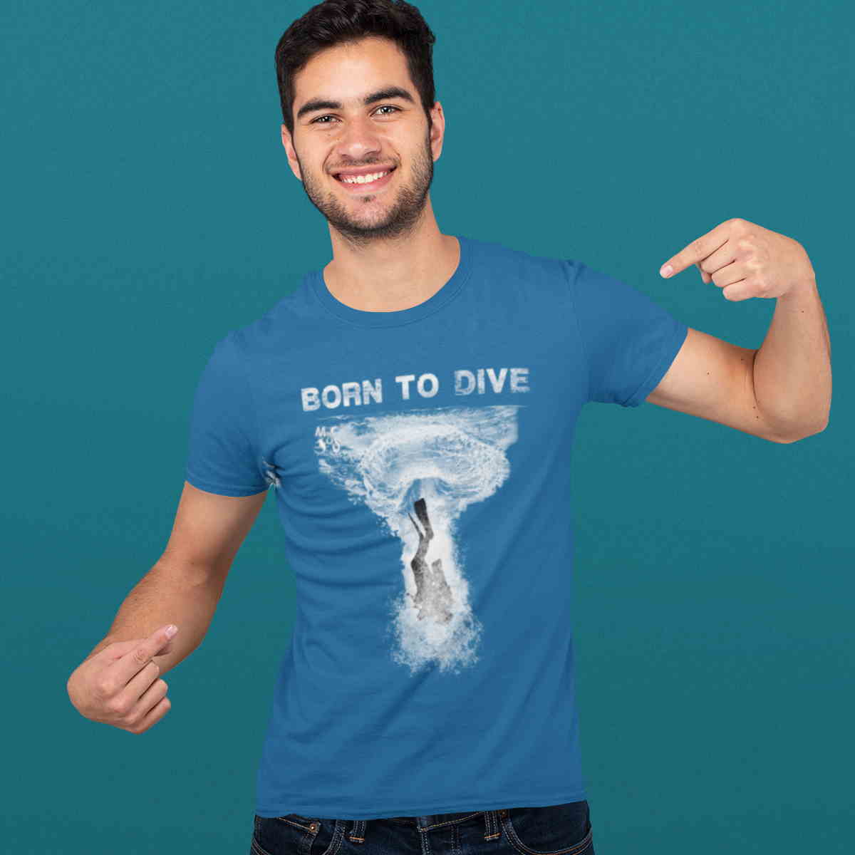 T-shirt Humour plongée BLEU , UNISEXE, 140g/m²: Born To Dive : Je suis né pour plonger