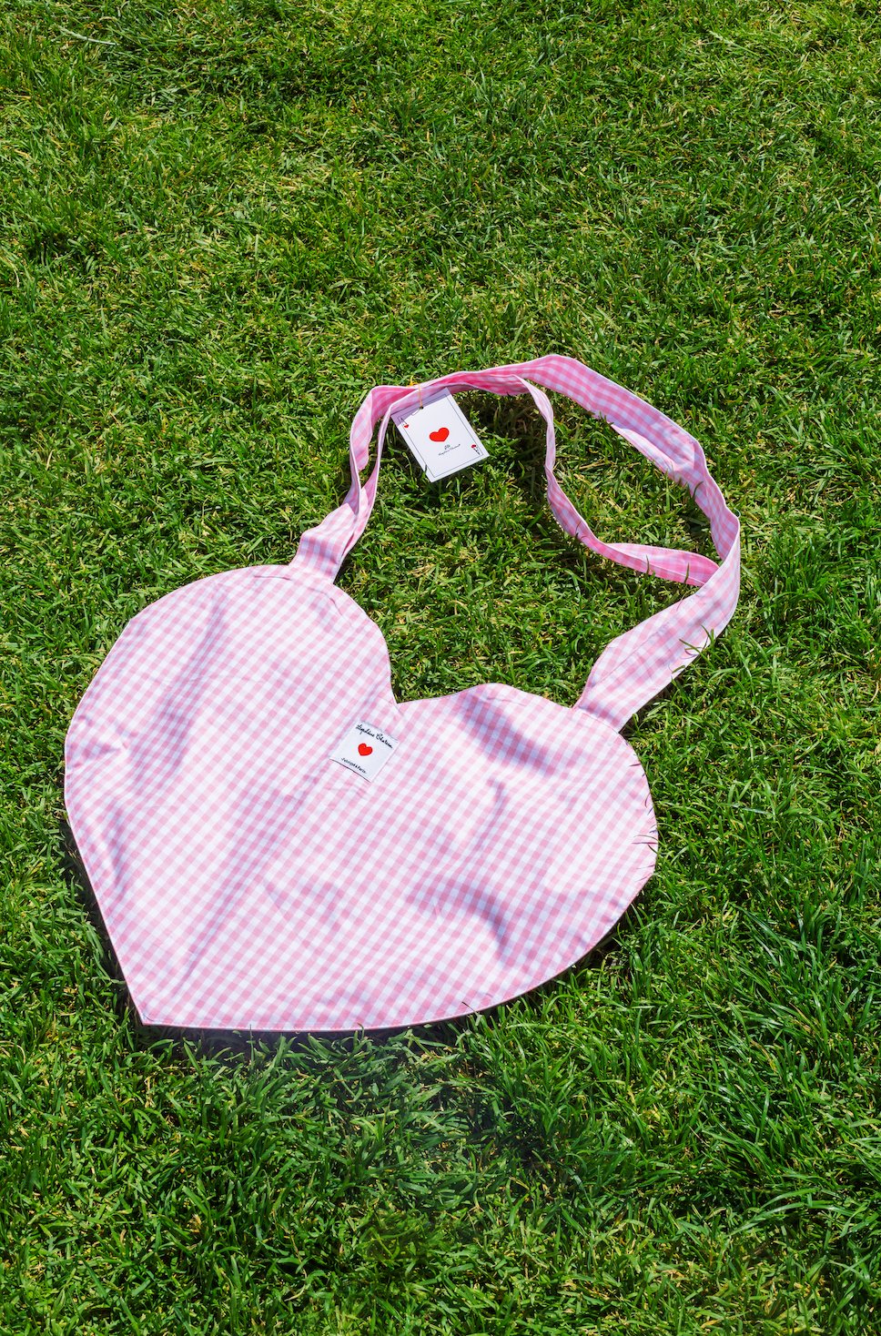 Tote bag en forme de coeur. 2 anses avec possibilité de le porter en bandoulière.